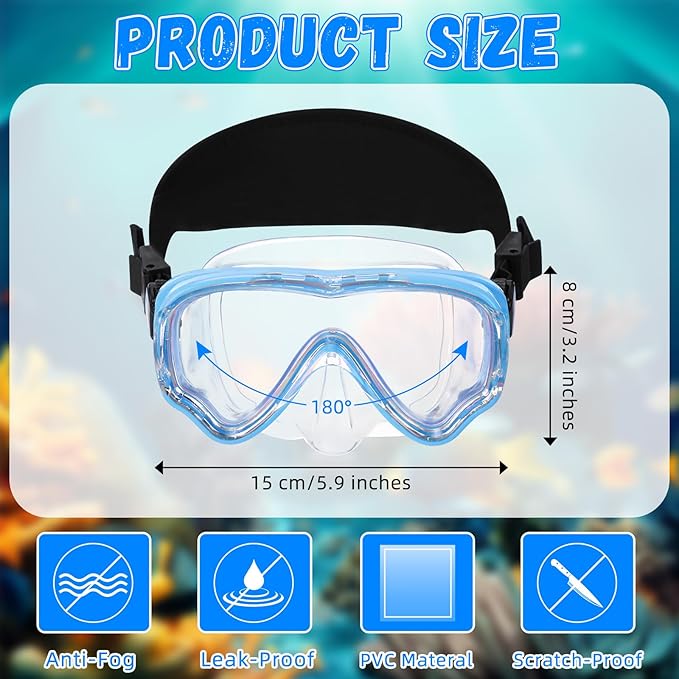 • Tempered Glass Lens: our swimming goggles mask lens is made from thickened tempered glass, impact resistant and scratch proof, strong and safe, can withstand various deep water pressures of diving or swimming, provide crystal clear view underwater, let your kids play without restraint
