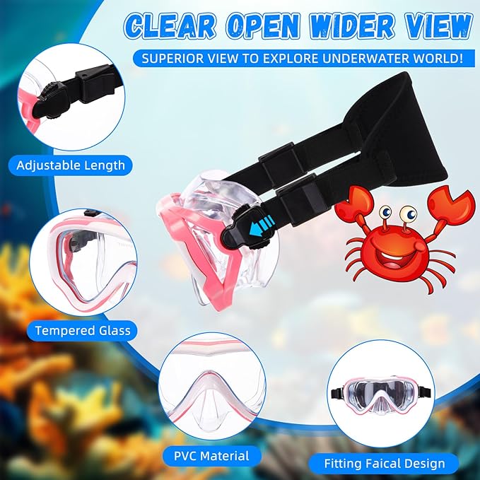 • Clear Open Wider View: the lenses of anti fog swim mask provide nice clarity and unobstructed view, suitable for snorkeling, swimming, body surfing, and more underwater activities, allowing your kids to easily explore the underwater world