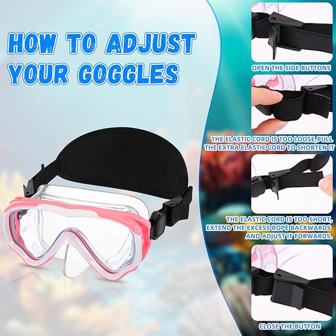 • Adjustable Headband and Anti Leakage: the swim goggles have adjustable wide elastic headband, which helps to keep the diving mask belt in place to prevent hair from pulling and knotting, increased flexibility and comfort, seal skirt and strap adopt soft silicone, seals on kids’ face well without worrying about water leakage when scuba diving snorkeling or swimming