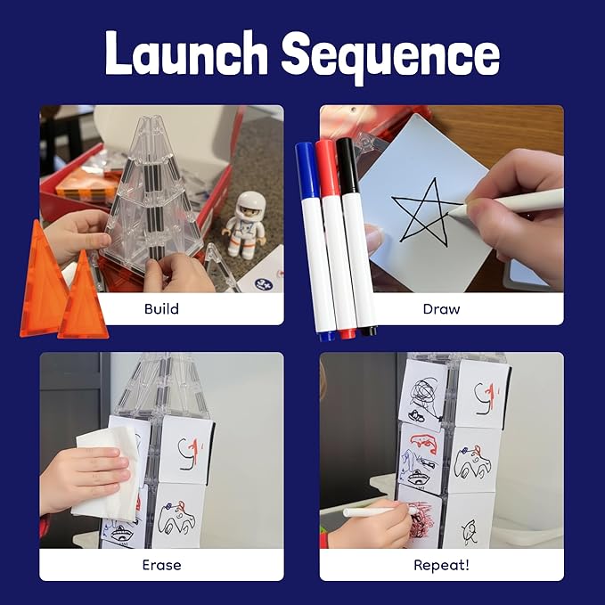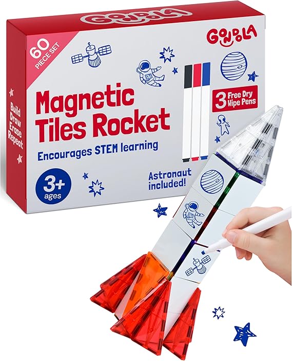 - Interactive Customization: Personalize your child’s playtime with magnetic tiles and dry-wipe plates. Ideal for space toys for kids 3-5, this set allows for unique rocketship designs, enhancing creativity and imaginative play