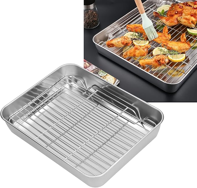 Stainless Steel Roasting Pan with Rack – Non-Stick, Deep Edges, 23.5 x 17.5 x 5cm